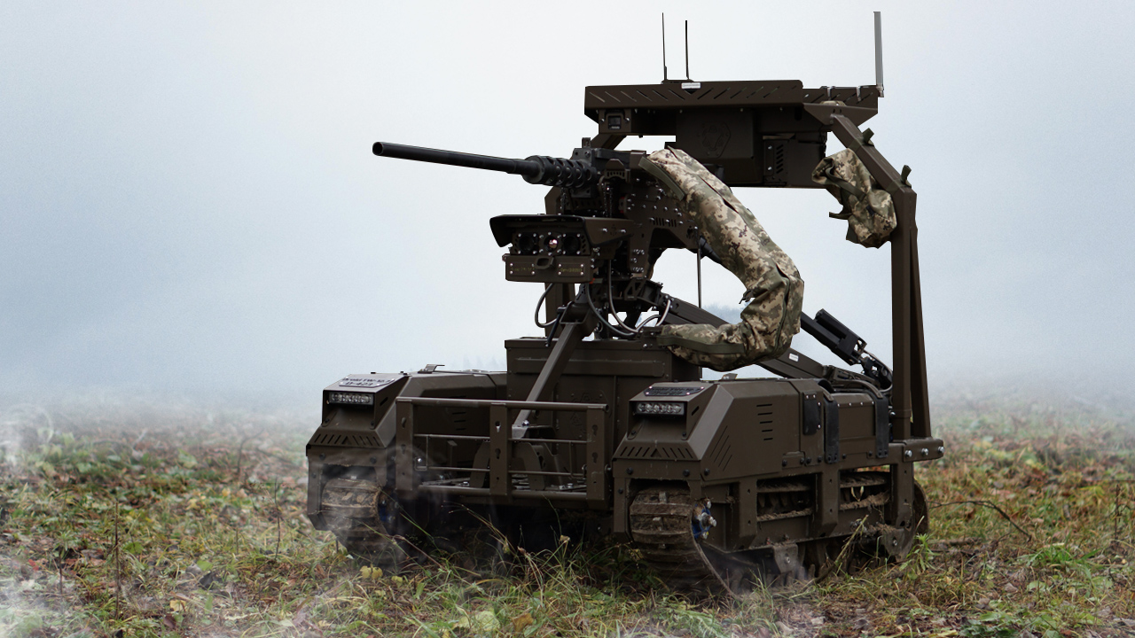 Droid TW 12.7 is a modern ground robotic system engineered for reconnaissance and combat tasks on the front lines. Built on a tracked platform and equipped with a remotely operated 12.7 mm Browning M2 machine gun turret, advanced mobility, and robust communication and guidance systems — it enables remote engagement while minimizing risk to human operators.